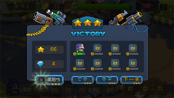5、而点击右上角的“1X”可以加速关卡进度;