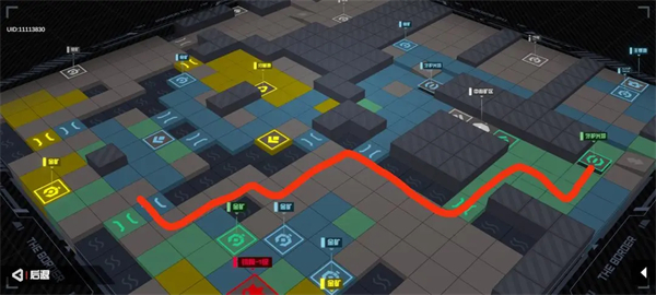 从上面那张图,我们可以看到,自己的守护光塔的位置,这条红线便是开荒的路线。我们在出门,拿到金矿以后,可以沿着这条路线一直开荒,你也可以选择从外围进行开荒,第二张图的开荒方法是最常用的方法,也就是从外围进行开荒。大家可以结合自己基地的路线,选择最好的开荒方法。