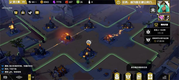 我们可以看到,在大发射台的四周有四个塔。上面和下面的塔叫做国王塔,也是体积较大的塔,体积较小的塔叫做骑士塔。一局游戏都有两个国王,两个骑士。形成不同的两个势力。16个人可以选择自己想要加入的国王阵营,从而形成八对八的两个势力。国王塔和骑士塔在全面开战后都会攻击自己3×3的范围,可以用弹头给国王塔和骑士塔升级,最高等级能够提升到三级。骑士塔并不能进攻,而是直接分配给国王塔。只能由拿到国王的人来选择加入自己势力的人当骑士。