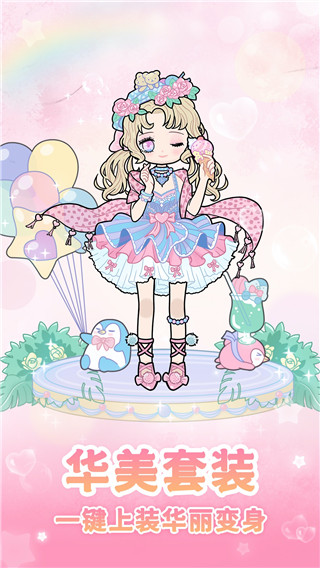 2、卡通风格的画面设计,超级休闲解压的玩法,自由装饰你的女孩