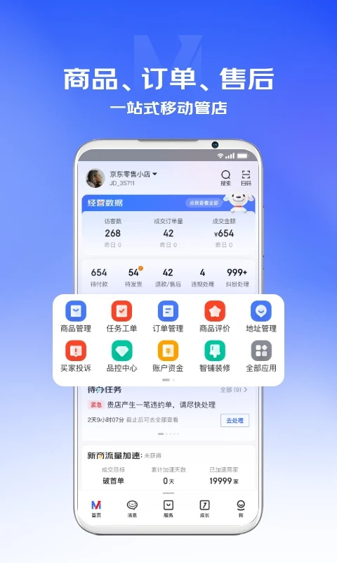 京麦app是由京东官方打造的一款商家订单管理平台,该软件主要是帮助京东卖家能够有效的管理店铺,能够为商家提供商品的信息、订单的管理、物流的跟踪,客户的聊天等等进行操作,全方位满足用户的使用需求。除此之外,这款软件高效整合京东商家助手和各优质资源,能够与商家统一子账号权限管理,根据子账号权限插件分类管理,通过京麦app还能够有效的观看到每天买家的购物比例和信息,非常方便好用。同时京麦app依托于丰富的大数据算法,能够为用户提供详细的数据分享,每天实时更新数据罗盘,用户可以随时查询店铺的健康日报、流量、销量趋势等数据,随时随地了解店铺动态。