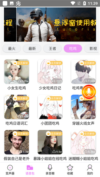 吃鸡专用语音包免费版是一款聊天吃鸡游戏变声器语音包app。适用于聊天、游戏、语音通话等各类场景的语音包,汇集各种游戏,如:刺激战场、绝地求生等多款热门游戏。是一款集变声、语音包、卡通变声视频和录音播放于一身的语音包变声软件,内含精品语音包,素材包括杨幂、李云龙、小猪佩奇、萝莉等精品语音包,变声功能上有男变女、女变男、大叔变萝莉、小孩变型男……等各种功能。这款软件可以帮助用户修改自己的手机麦克风发出的声音,改变用户的声线或者是直接更换声音,让你可以在这里用修改后的声音自由的发言。相信很多小伙伴都看过网络上的搞笑吃鸡视频,那些主播要么就是开了变声器在游戏中和其他的小伙伴一起聊天,要么就是装小姐姐故意恶搞。那么有了这款吃鸡专用语音包杨幂手机版之后你也可以化身为小哥哥小姐姐,在游戏中整活和你的小伙伴愉快玩耍。