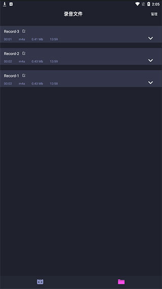3、点击右下角的是文件夹,里面放着用户录好的文件。