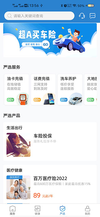 2、进入之后,大家找到严选这一任务栏,找到车险踢爆服务。