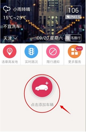 登录成功后,点击主页面的大圆形按钮,开始添加车辆信息。