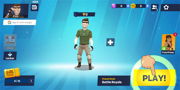 1、下载进入堡垒之夜建造模拟器手游,点击"PLAY"即可开启你的战斗之旅;