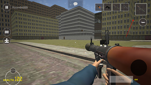 6、左下角有隐形轮盘,控制前进后退等,“Jump”跳跃,右上方为武器切换,可以选择不同作战方式,开始自由探索射击吧。