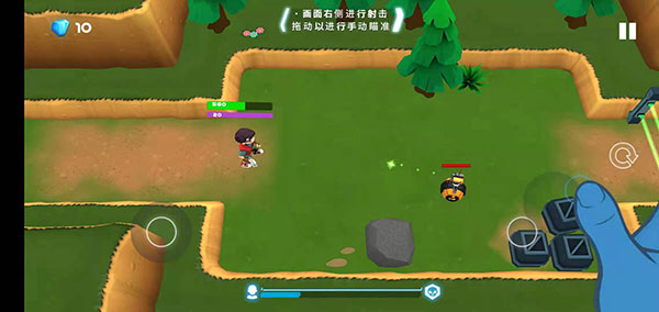 2、进入游戏后,拖动左侧的虚拟按钮进行移动;