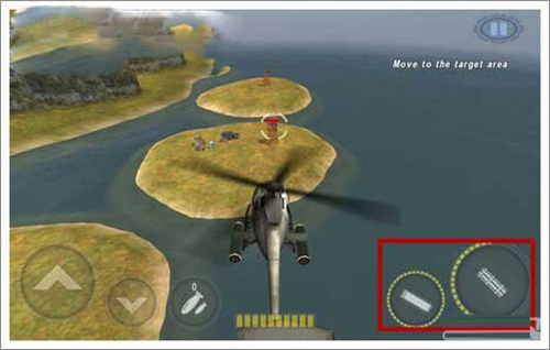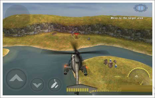 2、除了全键盘模式之外,还可以通过重力感应分别控制直升机前进后退或者是上下飞行等等;