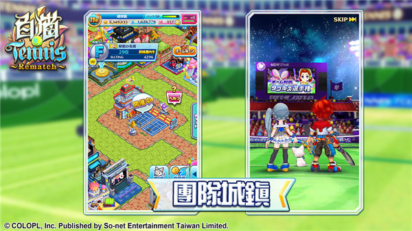 8、在“爬塔模式”到达第 10 层后,玩家可以开放“团队城镇”,最多可与 16 位玩家一起共同发展城镇参加联盟赛,参加双打比赛可以得到符文,强化城镇建筑物,透过“团队城镇”与好朋友一起组队,成员可以与其他团队城镇的队员一起双打,也可以与访客或队员聊天,快速累积情谊与实力!