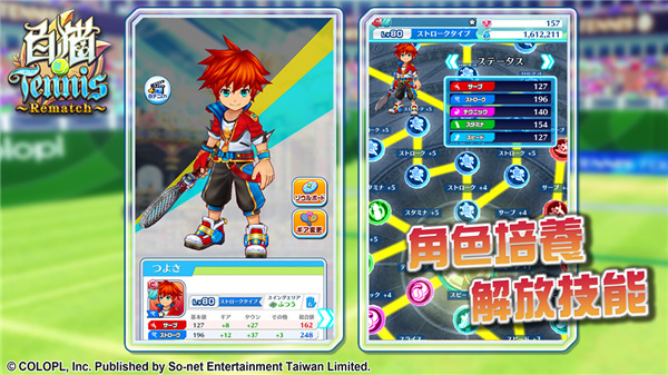 3、透过单指操作轻松移动与发动技能,玩家可自由与朋友进行单打或双打,“友情对战”打造角色 培养专属网球选手。
