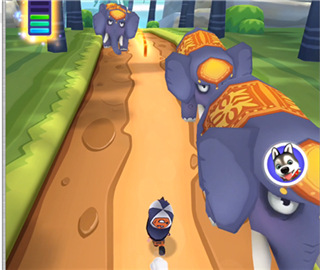 进入激流勇进后,你需要左右晃动手机使用重力感应来操控角色,躲避河流中的大石头,无伤前进一段时间后就可获得奖励。