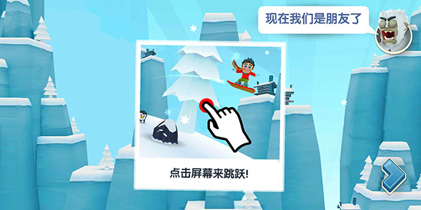 在《滑雪大冒险2》中最基础的操作就是跳跃,那么如何完成跳跃呢?点击屏幕,就可进行跳跃动作。根据滑雪板和坐骑的不同,跳跃的高度和距离也会有所差异哦。
