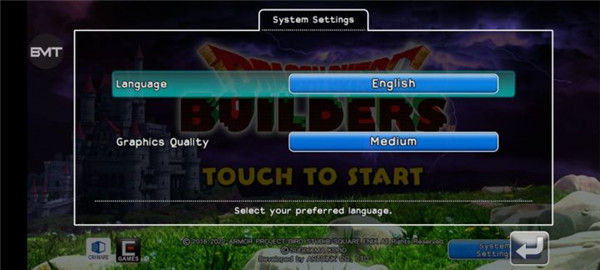 1、在本站下载并进入勇者斗恶龙创世小玩家1,点击右下角的“System Settings”按钮;