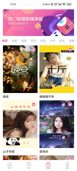 5、可以直接对视频进行编辑操作,随便添加各种特殊效果,还有大量的热门模板推荐。