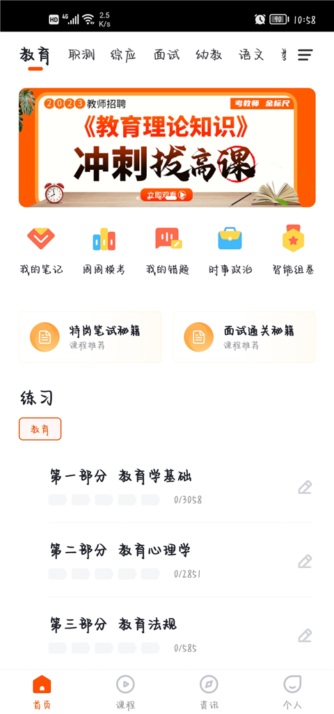 1、教师资格证考试必备软件,集题库、课程、模考、资讯、干货等功能于一体。