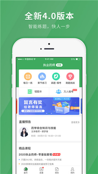 执业药师快题库app是专为药师而设计的考试辅导软件,在这里软件为用户们提供了非常丰富的学习资源供大家使用,以及海量的试题供大家巩固练习,来帮助用户们如愿的考取自己中所需求的证件。其中为了方便用户们更好的查缺补漏,还错题汇总服务呢,从这里可以很直接的看到自己在学习当中的不足之处以及长处。对了为让用户们更加实用试卷的出题样式,还提供了仿真模拟试卷服务哦,该服务是以近5年真题的命题趋势、知识点分布及难易程度进行命题组卷哦,最主要的是在做完之后还提供了视频解析帮助您梳理思路呢。以上软件所提供的服务有需求的话,不妨下载执业药师快题库app体验看看哦。