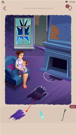 2、进入图案后,滑动下方的拼图移动到对应的缺口即可拼接。游戏分为好几个层次,有些图案要先拼接要前置才会显现哦。