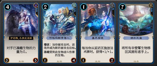 【复诵】*2:战场多面手,主要复制过牌、群体冰冻或者【还原】。