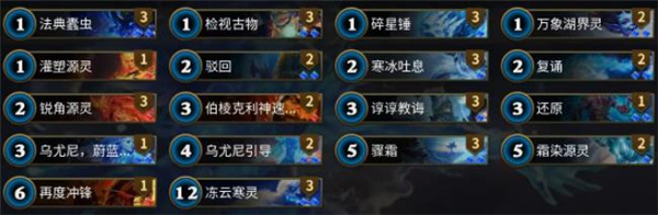 【寒冰吐息】*3:同样是附带过牌的冰冻控场,相对灵活。