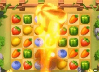 消除下方水果后,上方的水果整体下落,水果排列被最大程度的改变,更有可能出现方便消除的组合。