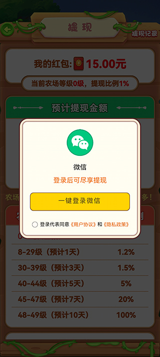 玩家本站下载并打开游戏之后,点击提现,进入提现页面,点击全部提现,即可使用微信一键登录。
