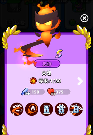 火魂是一只史诗品质的宠物因此会有2个初始技能。抹除:每回合开始抹除一只非首领的敌人,5回合的冷却时间。