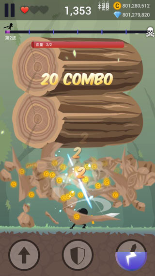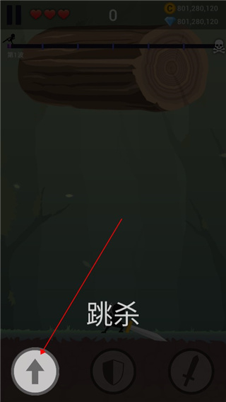 5、点击盾牌按钮可以控制火柴人抵挡伤害。