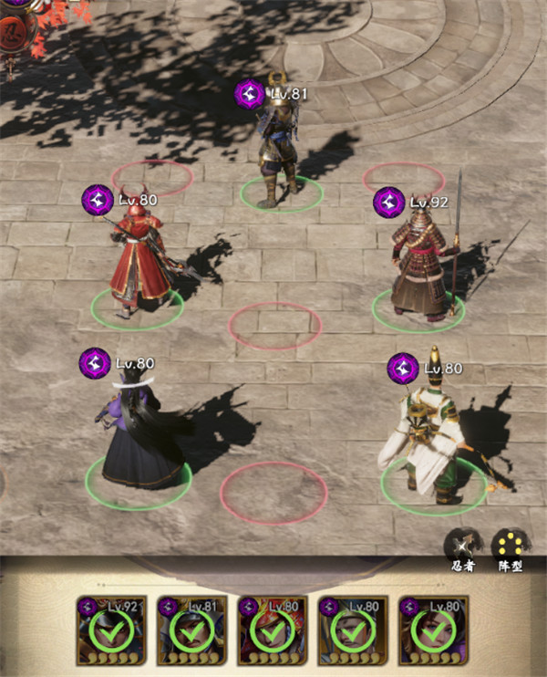 8、如上方截图所示,站位就用最初的站位即可,德川家康优先80突破学会重要的四技能,真田辛村作为输出主力也需要优先培养。在今川义元+山本勘助/浅井江的双奶阵容中优先培养今川义元,忍者技能随意带即可。