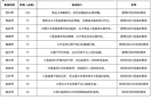 媳虫饵:价格50 效果:降低钓到杂物的概率