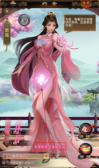 4、玩家也可以长按佳丽任意位置,消耗体力提升好感度,还可以触发隐藏特效,非常好看