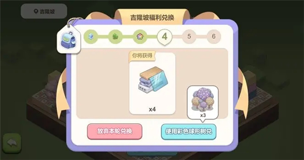 跑商完成后,利用途中收获的奖励和金币可兑换动物碎片、环境值、繁荣度、竣工材料、五彩花道具、城建卡车券、红宝石、家具设计图、工厂加倍卡等,还有小几率会出涂装或角色。兑换共有6次机会,且必须按顺序兑换,放弃后不可重新兑换,所以要谨慎哦。