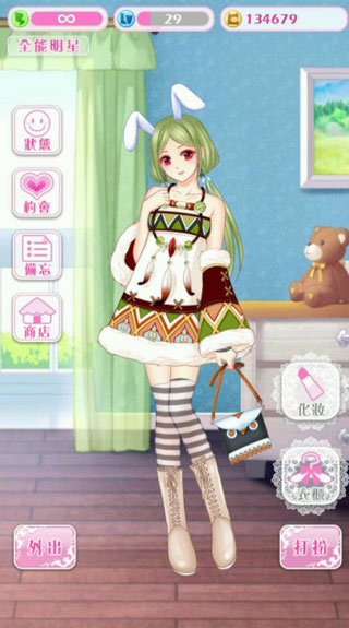 哈尼哈尼是一款非常好玩有趣的女性换装手游,游戏采用日系漫画风格设计,以竖版2D的画面呈现,操作采用的是触屏操作模式,玩家在游戏中可以任意的给自己的角色进行换装,你只需要点击屏幕中的各种标明的功能键即可出现菜单面板,想要穿什么衣服就点击它即可,玩法十分简单。除了换装还有独特的化妆环节,玩家可根据自己的喜好搭配睫毛、眼影、美瞳、唇彩、腮红和各种纹身可以自由选择,是首款乙女恋爱换装游戏,也是最受女性朋友所喜好的手机游戏。游戏中玩家作为新出道的艺人,需要学会在不同场合打扮不同风格的自己,你还可以参加各种舞会,做时尚女王。另外,游戏为玩家们加入了一些小游戏,例如拼图、猜谜、爱情测试等等,别看这小巧的设置,会在不经意间让玩家们的游戏过程变得更有趣味,当然也就更容易让玩家喜欢了,让玩家们在无聊之余也能有其它玩乐的机会。
