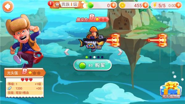 传承了飞行射击的精髓玩法,还融入了更多创新玩法!在游戏中不仅能与熊大、熊二、光头强一同挑战神秘敌人,更可以依靠强大的变身系统,完成惊天逆袭。