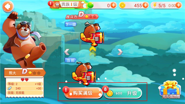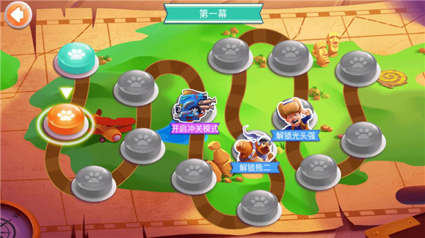 游戏中不仅包括了熊大、熊二、光头强三个主角还加入了幼年熊大和幼年熊二,角色更呆萌更可爱。