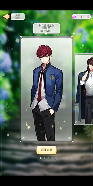 3、点击左上角的【好感度】可以查看玩家与各位男主之间的发展关系。