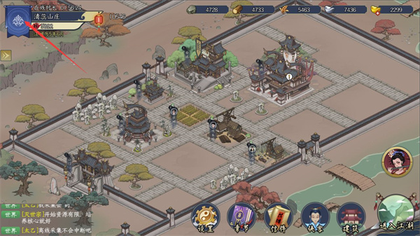 1、当掌门选定出生地点,正式进入江湖后便会来到属于你的宗门领地。在此各位掌门可以进行模拟经营,建立门派建筑,安排弟子进行采集等工作。