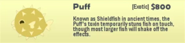 行为:来回的游动,如果上钩会鼓起来,身上的刺会将接触到的与赶跑,可用来钓Swordfish。