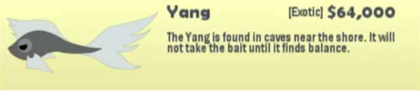 钓法:需要小型鱼饵,用鱼饵将 Yang诱引到Yin的地方,Yin就会上钩。