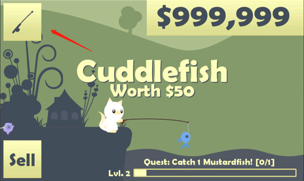 6、当等级升级到2级时,点击左上角的鱼竿图标;