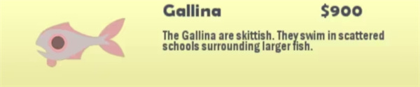 行为:悬停在原地,可能是移动速度太慢了,作为活鱼饵,钓到它以后,可以直接钓Lionfish,还可以钓大型鱼,因为它相当于大型活饵。
