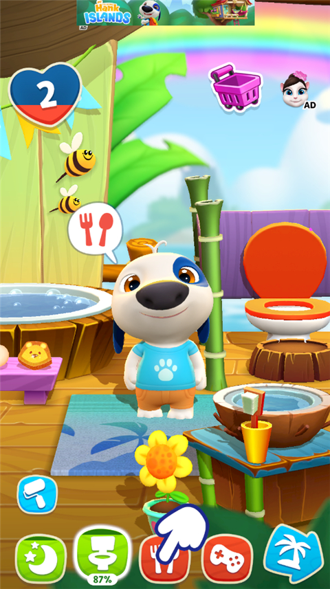 给汉克穿上他最喜欢的衣服,设计树屋,展示你的风格。用有趣的食物喂你的笨狗,清洁它的牙齿,让它睡觉。或者,去看看岛上的夜生活!