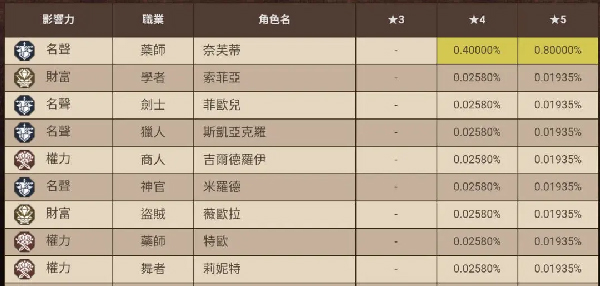 抽到的角色可能是4.5星★★★★☆,5星★★★★★,6星★★★★★★。4.5星转5星需要使用XX职业圣印,在讨伐中随机掉落(概率极低)。试炼之塔开放后,在职业塔有稳定获取途径(无难度)。
