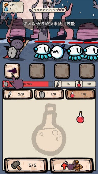 3、另外,在游戏中武器增加恶魔的攻击力,盾牌可以增加恶魔的最大生命值,药剂增加恶魔的生命恢复