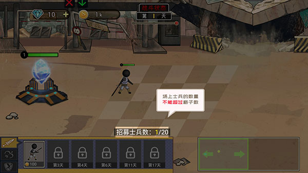2、招募士兵消灭僵尸,全力保护水晶,玩家可使用金币来招募士兵。