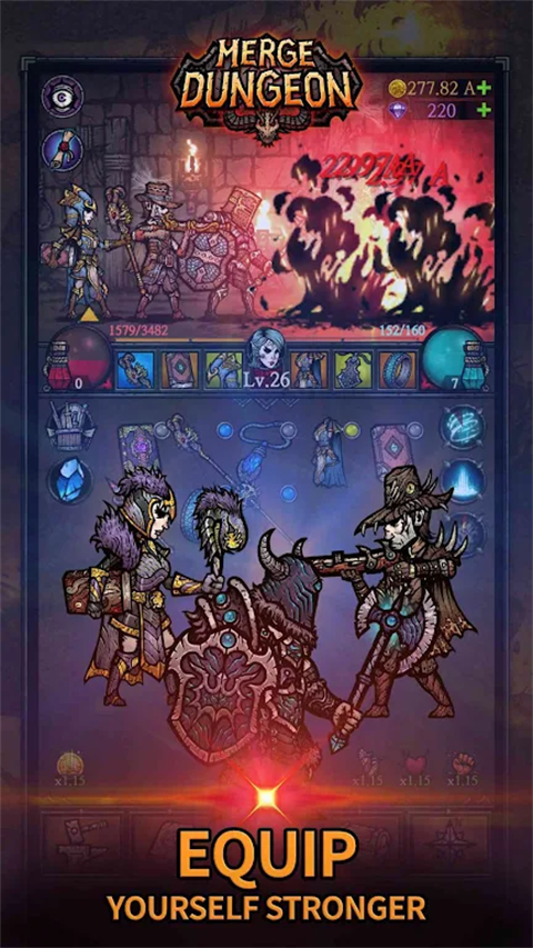 合成地牢官方正版是一款好玩的冒险战斗游戏,游戏采用暗黑的场景风格,通过不断的合成,培养出高等级的战士,多种职业属性可以选择,主分为战士、猎人、魔法师等,每个角色技能是不一样的,你可以合理进行解锁养成。收集各种强大的道具,进行合成,掠夺各类资源以及面对各种突发事件,更多高级稀有物等你来合成。游戏拥有海量关卡,玩家可以通过闯关不断地解锁,合理运用你的策略进行布局,将对手消灭掉。探索整个地图,漆黑幽深的地牢中隐藏着最大的boss首领,增强自己的实力,让你变得更强大,喜欢的朋友欢迎下载体验。