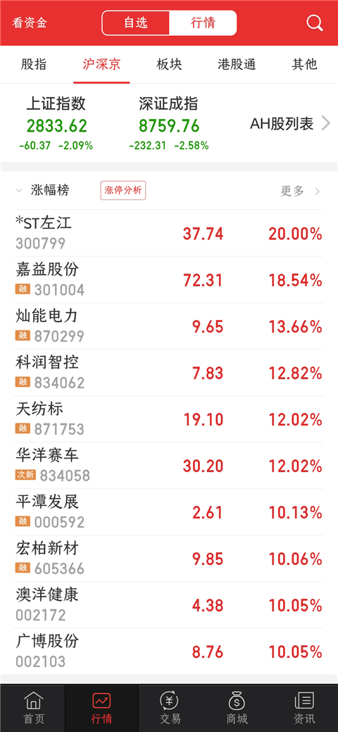 4、app包含大部分股票的涨跌信息,方便用户了解。