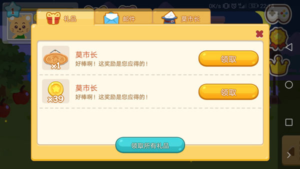 4、新手指示结束后,你也完成了那些任务,就可以到上面的礼品里去领取奖励啦,这个礼品的奖励还是挺丰厚的,当你完成的任务越来越多,奖励自然也就多了,而且每天的都是会有奖励的,所以要经常上线来看看自己的小宠物,然后领取这些奖励,为自己的宠物营造出一个更好的生活环境吧。