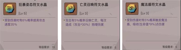 追击报复流:三角符文石选取生还者和底力符文石来堆最大攻和最小攻,六角的符文水晶推荐的是狂暴姿态,魔法盾和亡灵召唤。