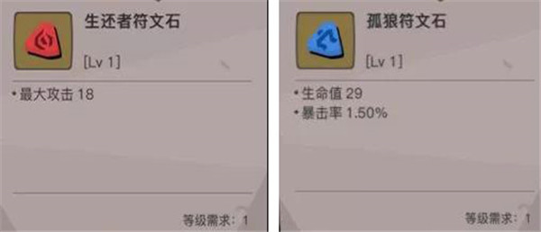 暴击战魂流:三角符文石选取生还者和孤狼符文提供最大攻和暴击几率,其中孤狼符文的暴击几率为固定属性没有成长性一直都会是1.5%,因此孤狼符文不用刻意去提升等级。六角的符文水晶也推荐的是狂暴姿态,魔法盾和亡灵召唤。